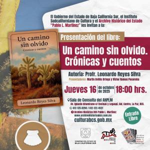 Jueves 16 de octubre a las 18:00 horas, en la sala de Atención a Usuarios del Archivo Histórico del Estado "Pablo L. Martínez". Avenida Ignacio Altamirano e/Encinas y Legaspi, Col. Centro, La Paz BCS, México